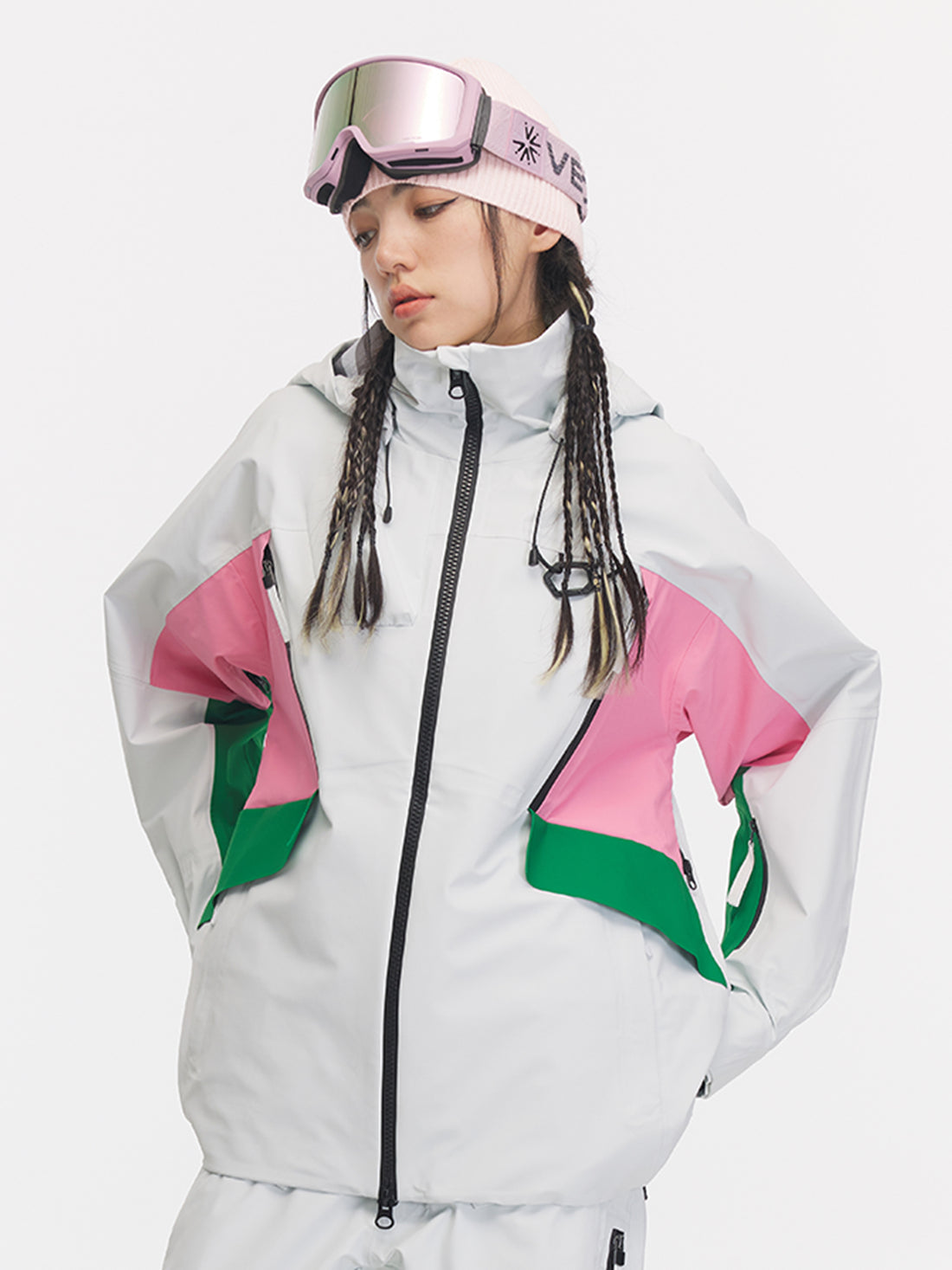 With a bold, playful design featuring color-blocked accents and a unique diagonal placket, this Snowpark...