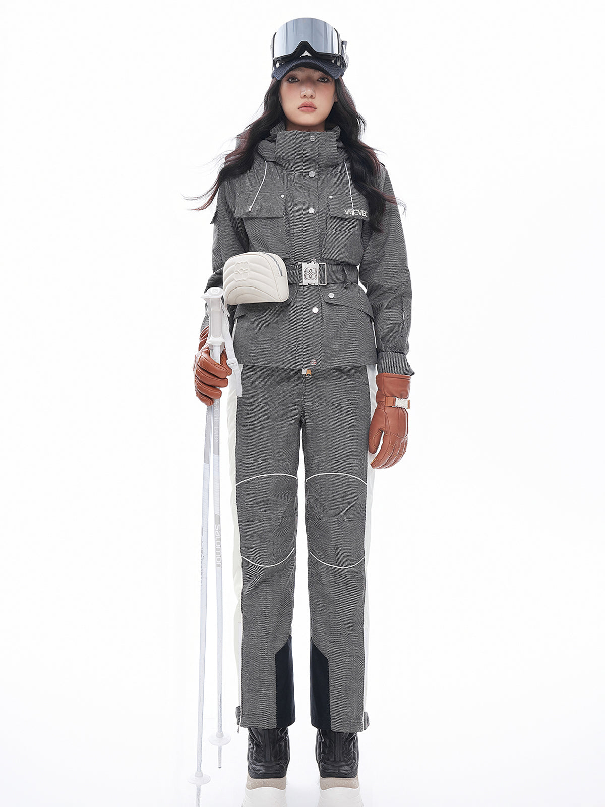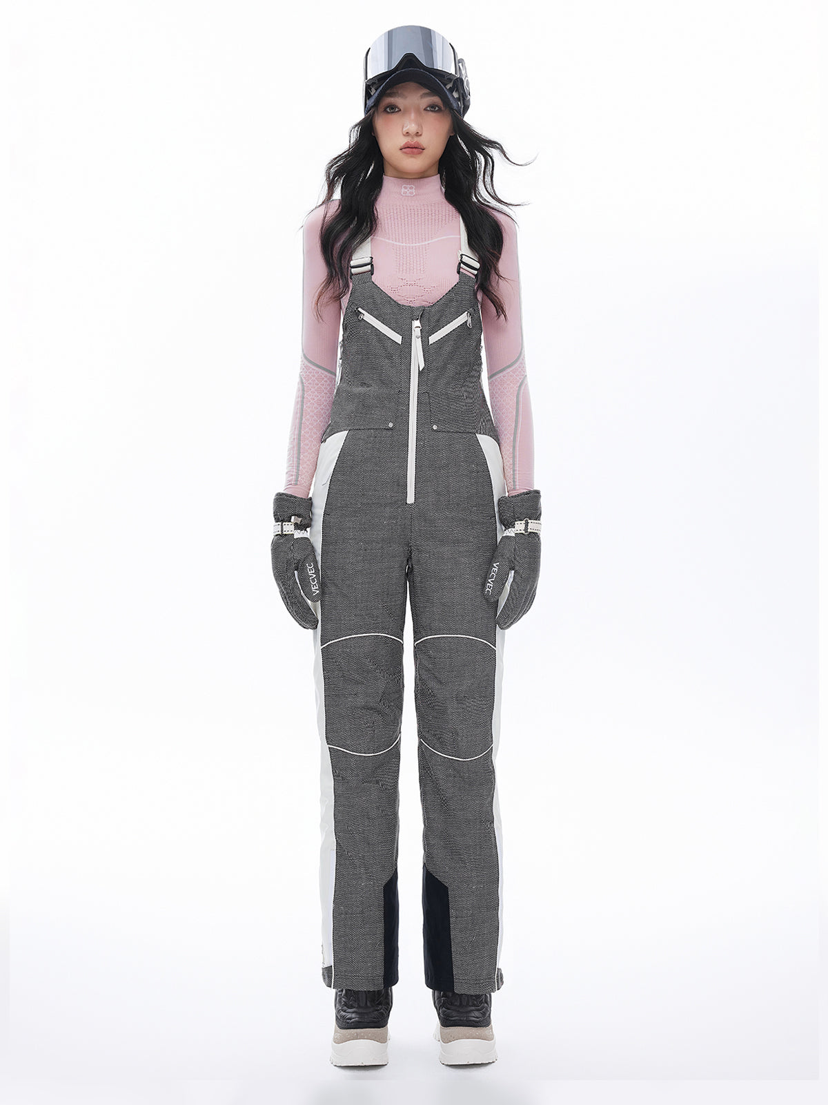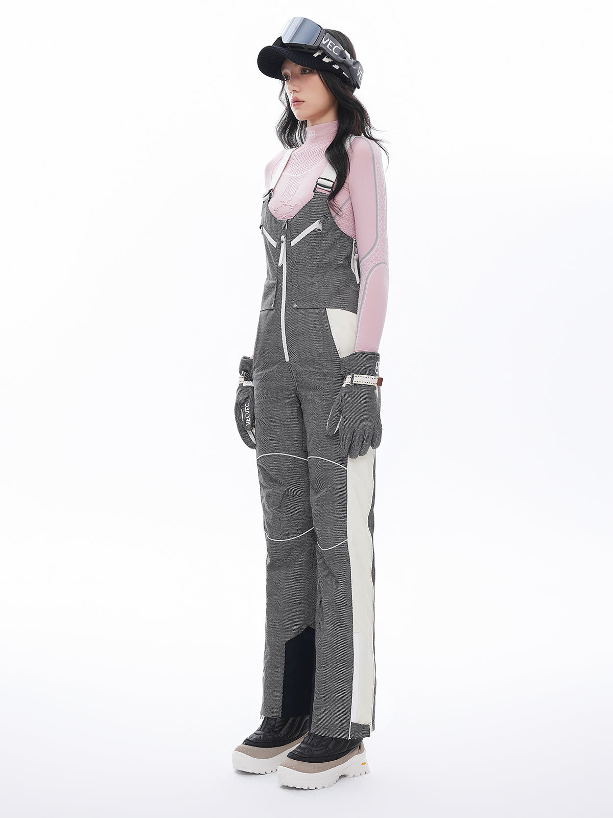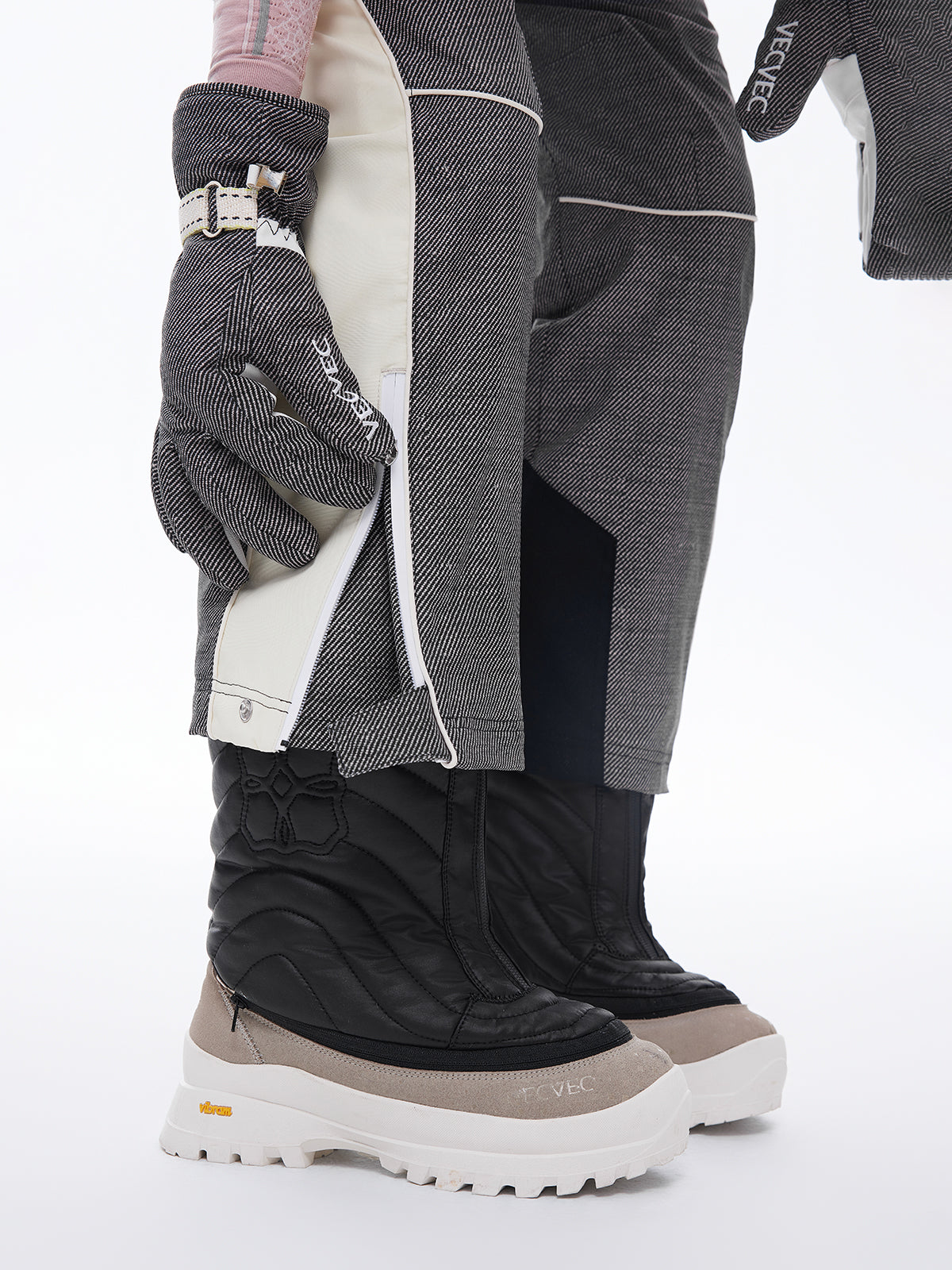 - Extended cuff design to easily accommodate ski boots, with adjustable openings for dynamic movements