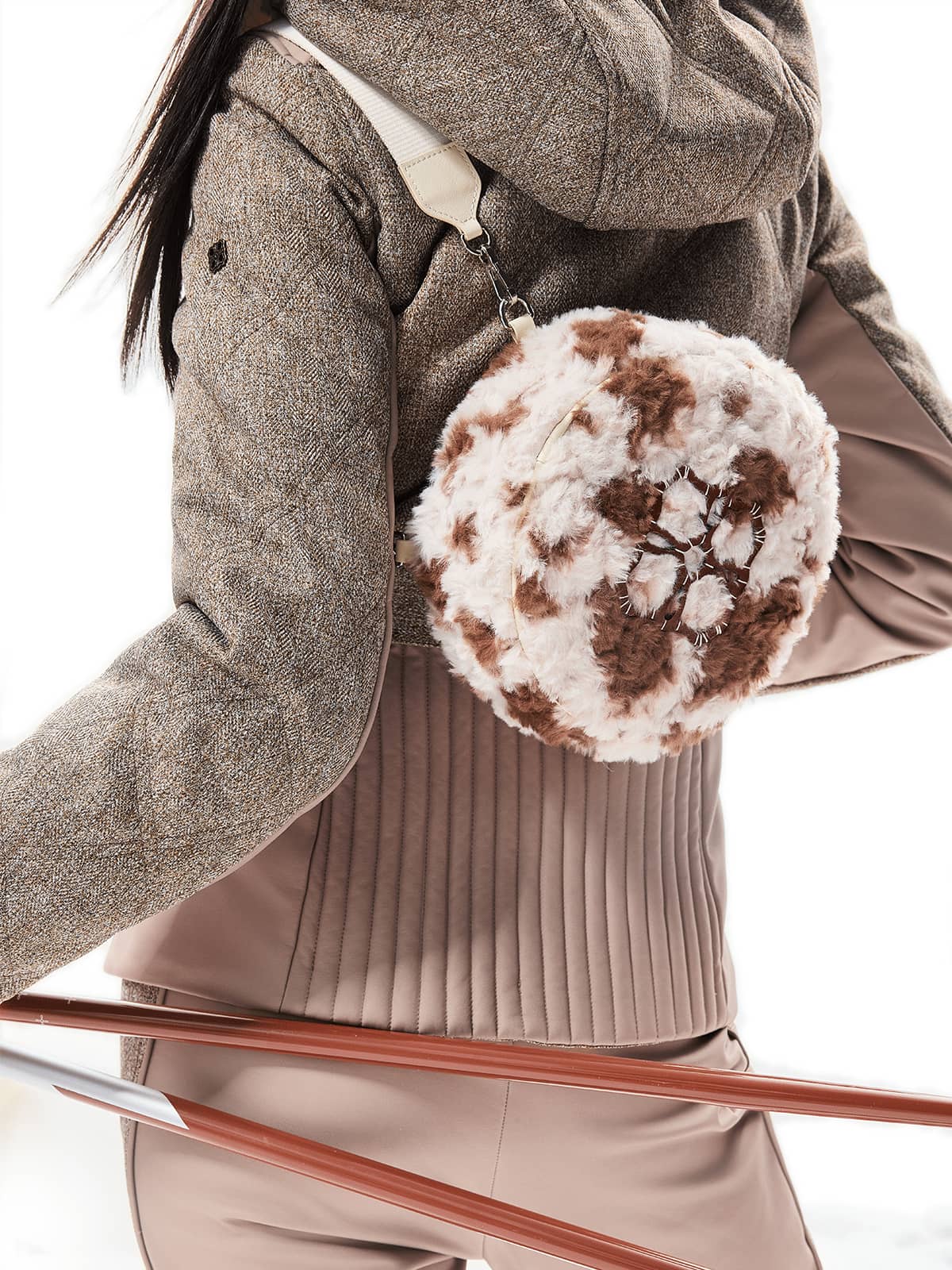 Cow Print Plush Fabric – Ultra-soft to the touch with playful charm for a whimsical winter aesthetic.