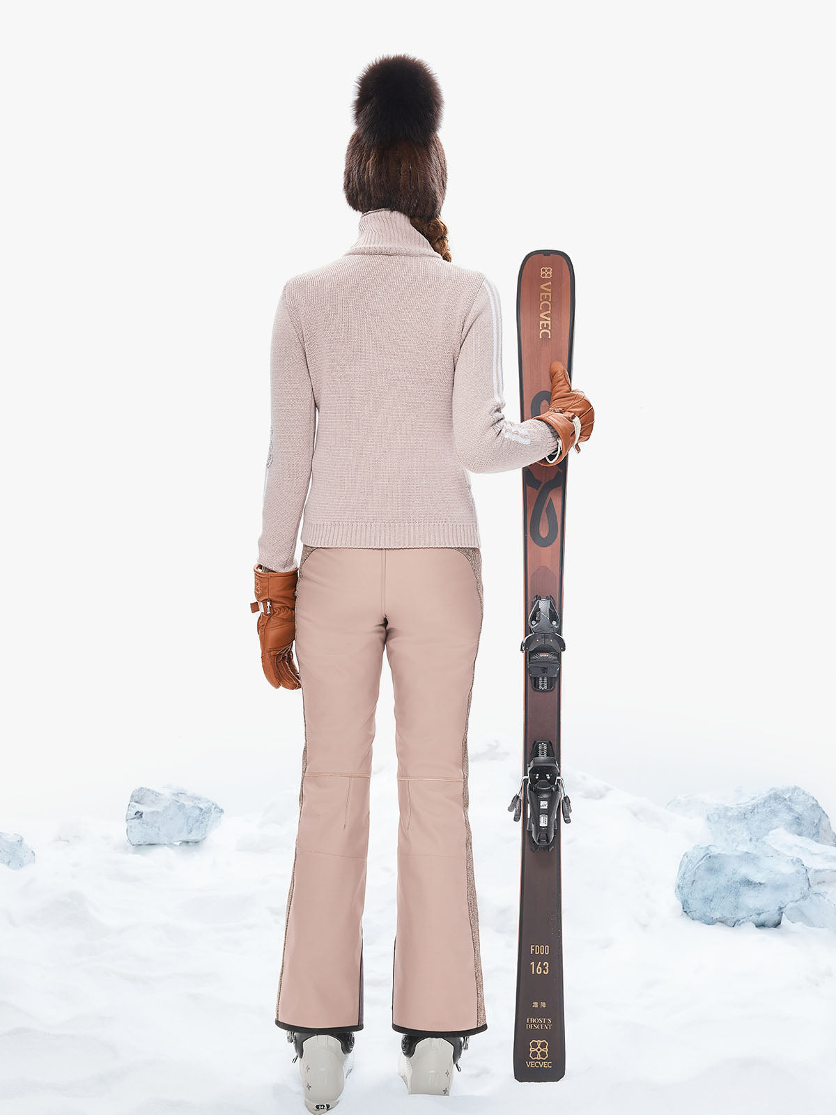 2. Articulated knee darts + offset seam construction follow the natural flexion of skiing postures for enhanced mobility.