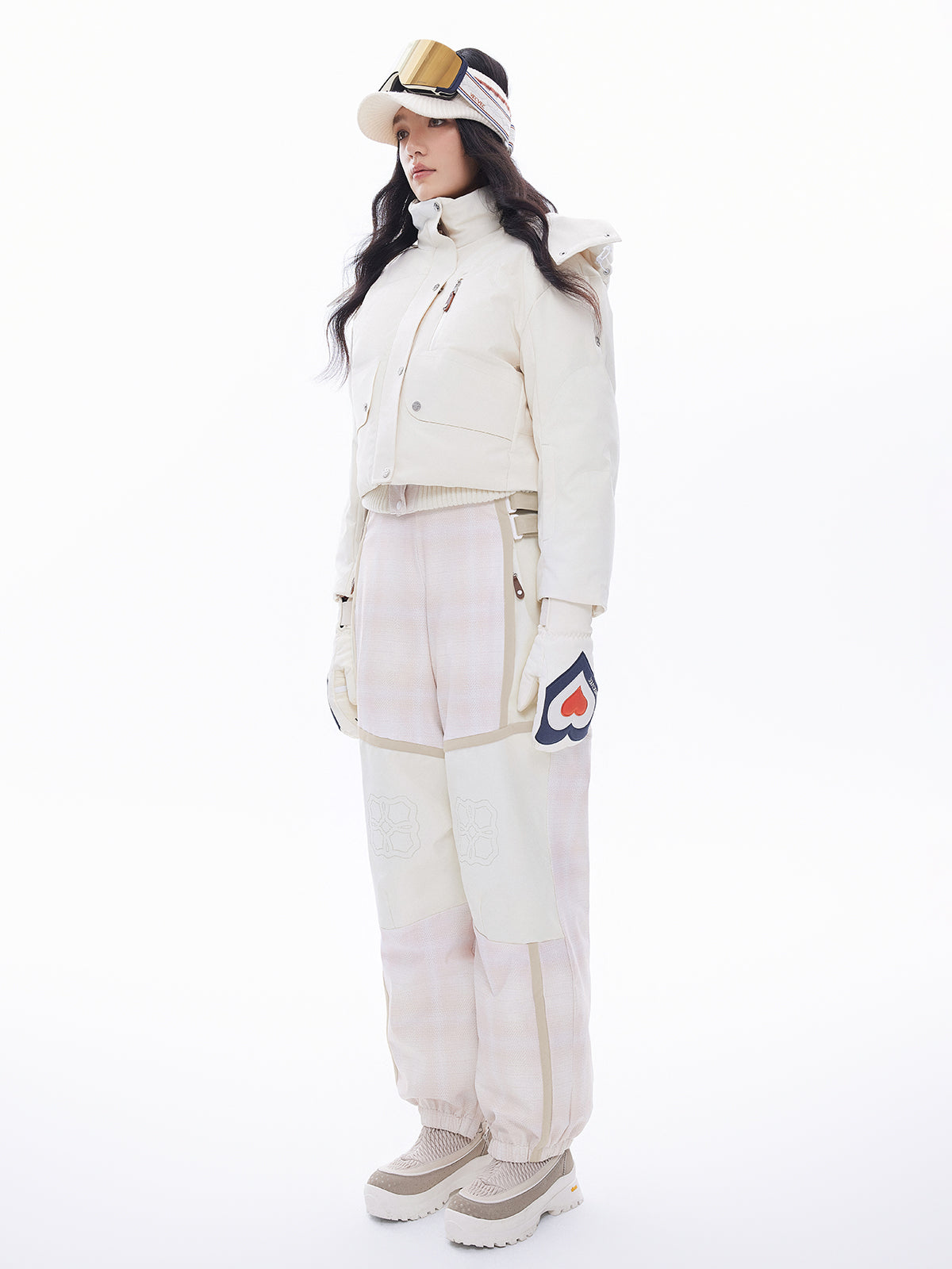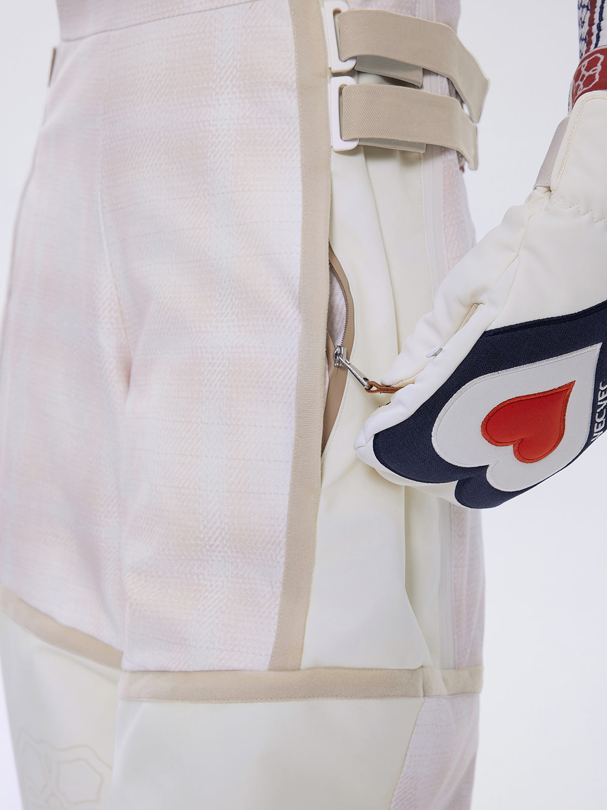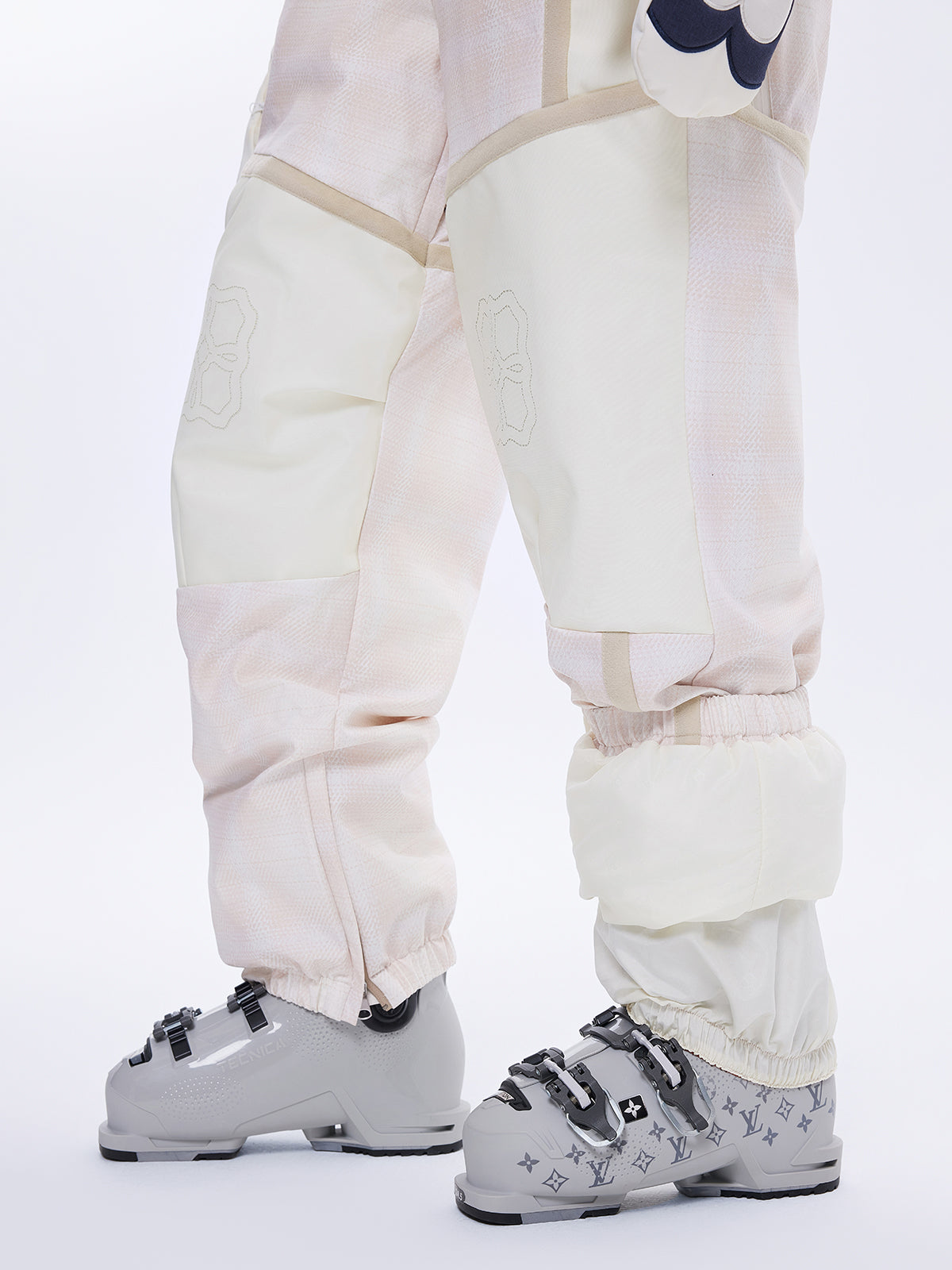 Side leg zippers with integrated snow skirts and anti-slip design to keep snow out.