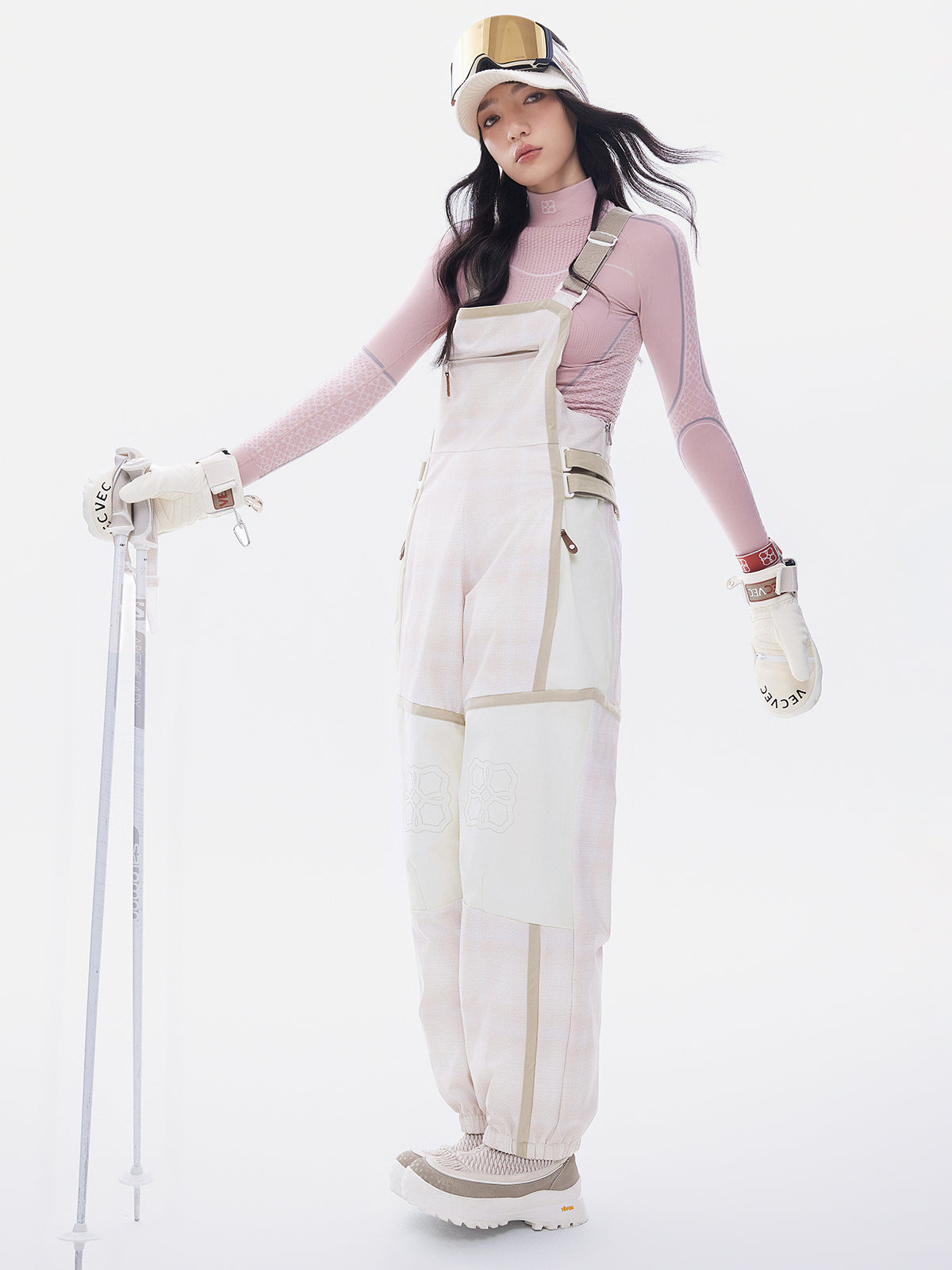 Loose-fit bib pants with light insulation can be layered over a warm mid-layer, suitable for both single and double-plank skiing.